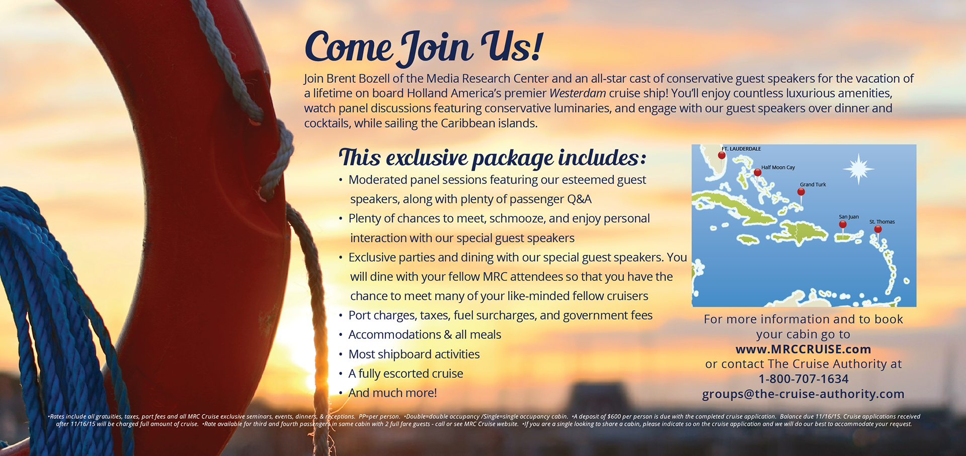 I designed a suite of ads and brochures to promote an upcoming cruise.